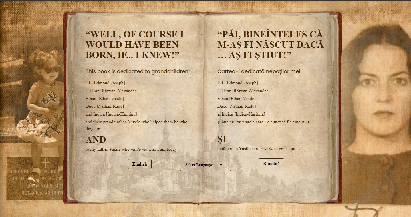 Am scris cartea în limba mea maternă, în limba română; am tradus apoi în engleză (aşa cum engleza s-a lipit de mine) doar PARTEA I-a a cărții.