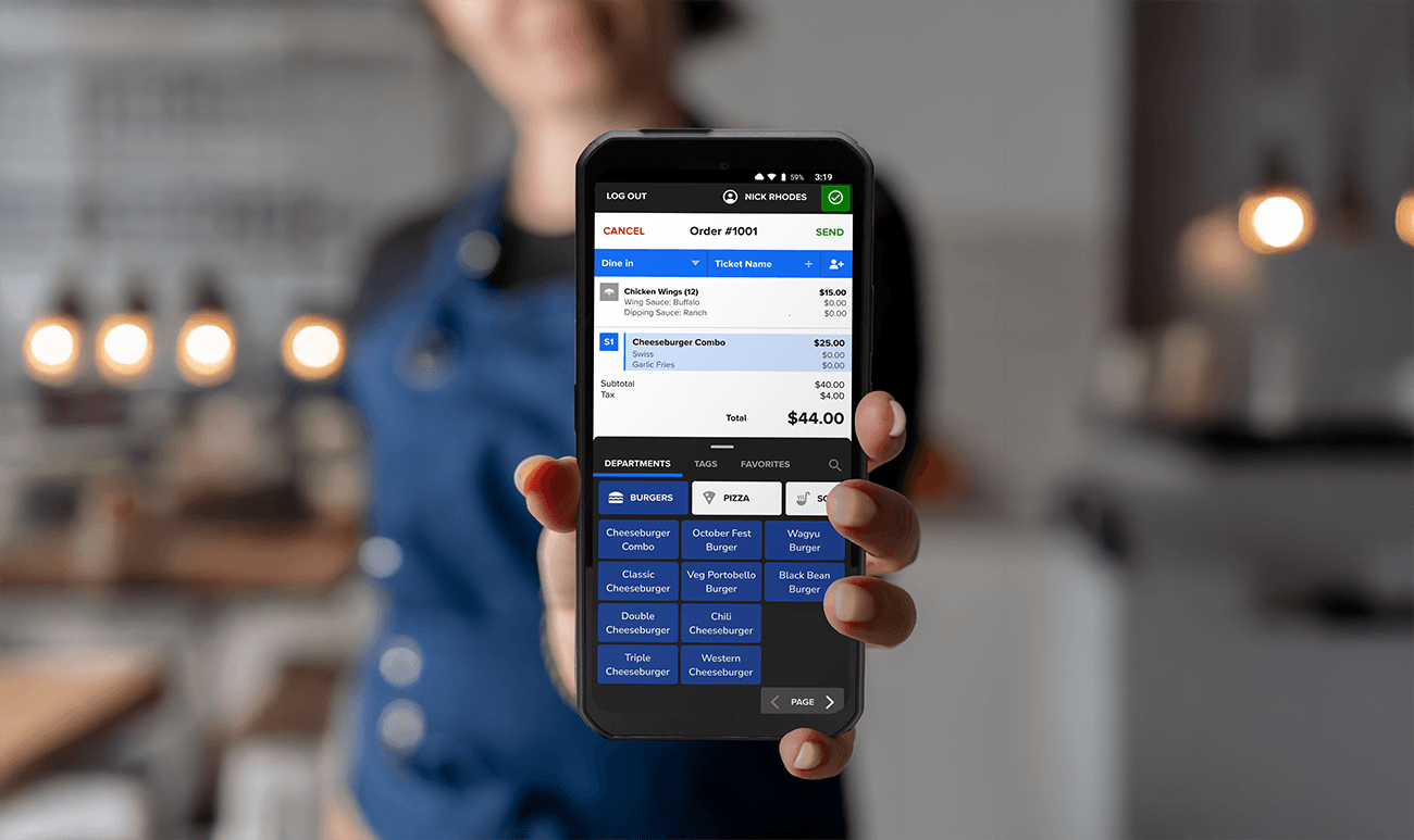 An all-in-one handheld POS device built to thrive in fast-paced hospitality environments.