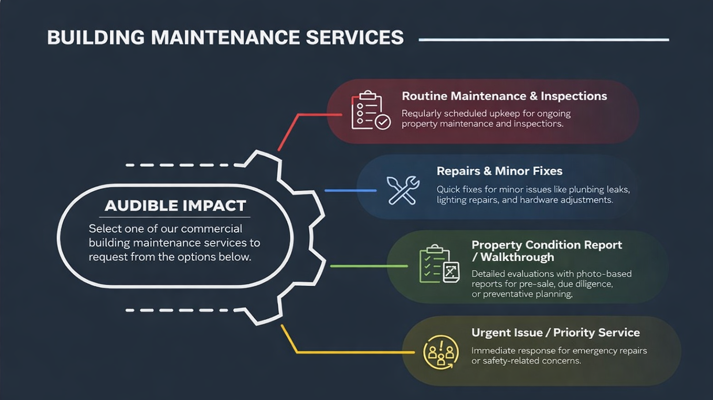 Reliable upkeep for common areas and tenant spaces, including lighting updates, minor plumbing fixes, and general safety equipment checks.