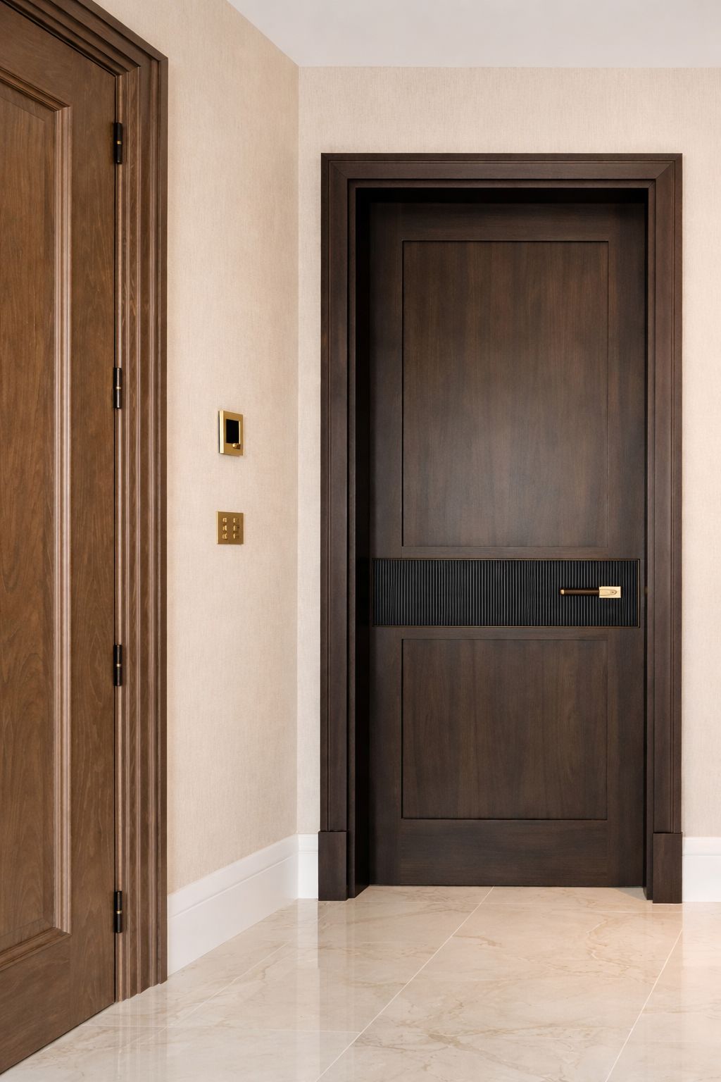 Fully bespoke security doors for villas and apartments, constructed around reinforced steel cores and engineered to withstand forced entry.